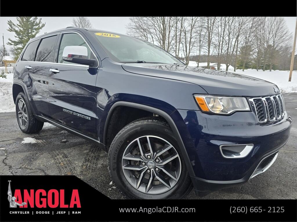 2018 Jeep Grand Cherokee Limited True Blue Pearlcoat 4WD 8-Speed Automatic 3.6L V6 24V VVT Local Trade, Non-Smoker, 4WD, 1-Year SiriusXM Guardian Trial, 5-Year SiriusXM Traffic Service, 5-Year SiriusXM Travel Link Service, 8.4'' Touchscreen Display, Apple CarPlay/Android Auto, For Details Visit DriveUconnect.com, Google Android Auto, GPS Antenna Input, GPS Navigation, HD Radio, Heated front seats, Heated rear seats, Heated steering wheel, Integrated Voice Command w/Bluetooth, Leather Trimmed Bucket Seats, Power Sunroof (DISC), Quick Order Package 2BH, Radio: Uconnect 4C Nav w/8.4'' Display, SiriusXM Traffic Plus, SiriusXM Travel Link, USB Host Flip, Wheels: 18'' x 8.0'' Tech Gray Aluminum.