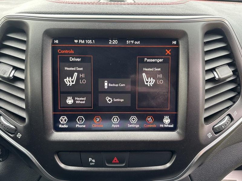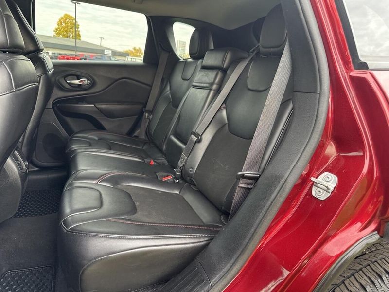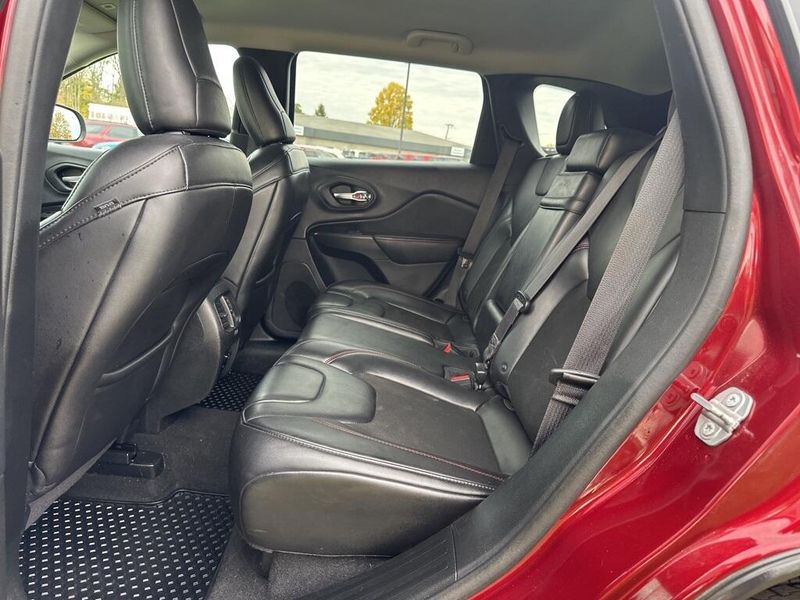 2019 Jeep Cherokee Trailhawk Velvet Red Pearlcoat 4WD 9-Speed 948TE Automatic 3.2L V6 Local Trade, Non-Smoker, Remote Start, Auto-Dimming Rear-View Mirror, Cold Weather Group, Comfort/Convenience Group, Engine Block Heater, Heated Front Seats, Heated Steering Wheel, Power Liftgate, Quick Order Package 27E Trailhawk, Remote Start System, Security Alarm, Universal Garage Door Opener, Windshield Wiper De-Icer.