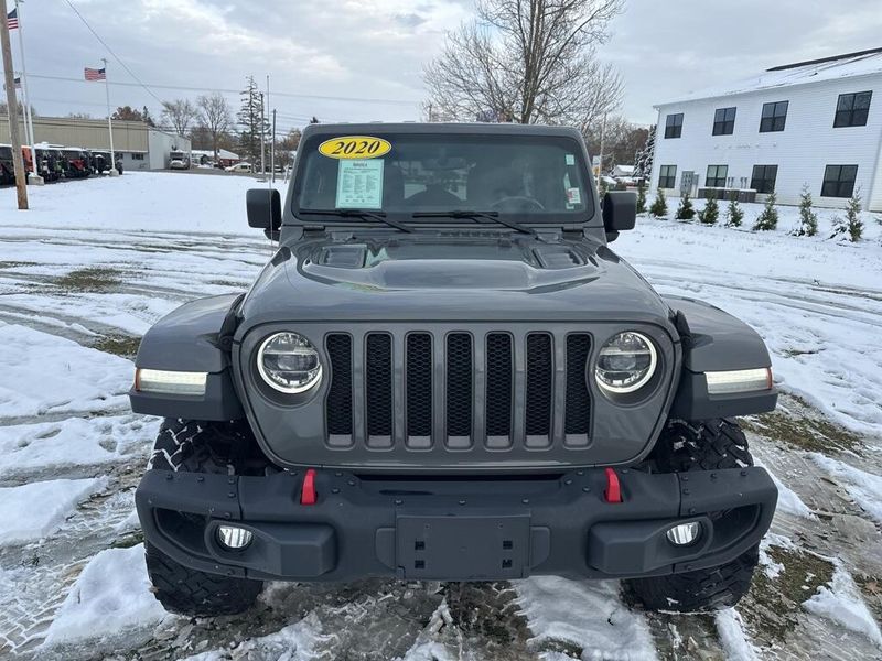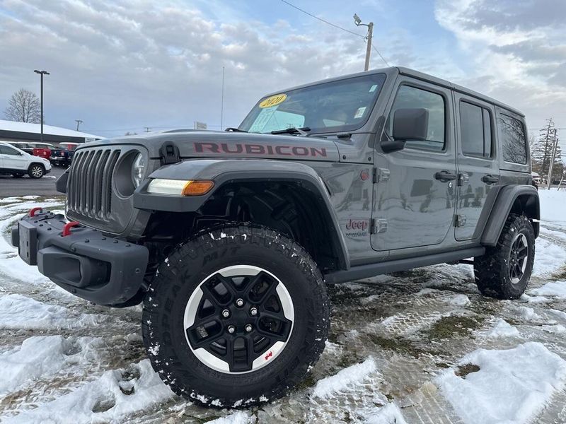 Clean CARFAX. 2020 Jeep Wrangler Unlimited Rubicon Sting-Gray Clearcoat 4WD 8-Speed Automatic 3.6L V6 24V VVT Non-Smoker, 1-Year SiriusXM Guardian Trial, 240 Amp Alternator, 4G LTE Wi-Fi Hot Spot, 5-Year SiriusXM Traffic Service, 5-Year SiriusXM Travel Link Service, 7 & 4 Pin Wiring Harness, 700 Amp Maintenance Free Battery, 8.4'' Radio & Premium Audio Group, 8.4'' Touchscreen Display, Alpine Premium Audio System, Apple CarPlay/Android Auto, Auto-Dimming Rear-View Mirror, Auxiliary Switches, Black 3-Piece Hard Top, Blind Spot & Cross Path Detection, Class II Receiver Hitch, Cold Weather Group, Daytime Running Lamps LED Accents, Dual Top Group, Emergency/Assistance Call, For Details, Visit DriveUconnect.com, Freedom Panel Storage Bag, Front LED Fog Lamps, GPS Navigation, HD Radio, Heated Front Seats, Heated Steering Wheel, LED Lighting Group, LED Reflector Headlamps, LED Taillamps, No Soft Top, ParkSense Rear Park Assist System, Premium Black Sunrider Soft Top w/Dual Top Group, Quick Order Package 24R, Radio: Uconnect 4C Nav w/8.4'' Display, Rear Window Defroster, Rear Window Wiper/Washer, Safety Group, SiriusXM Traffic Plus, SiriusXM Travel Link, Steel Bumper Group, Steel Front Bumper, Steel Rear Bumper, Trailer Tow & HD Electrical Group, Wheels: 17'' x 7.5'' Machined w/Black Pockets.