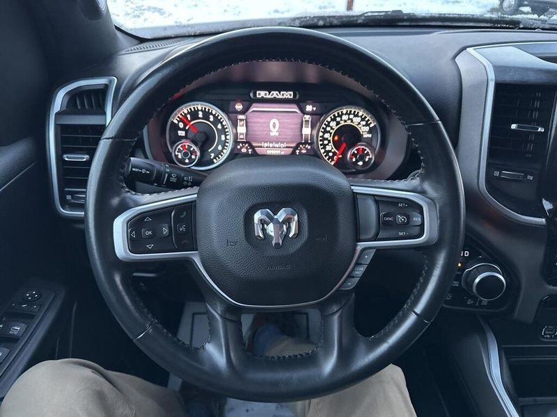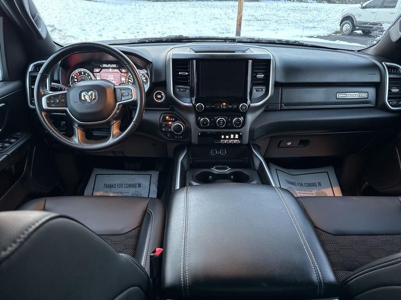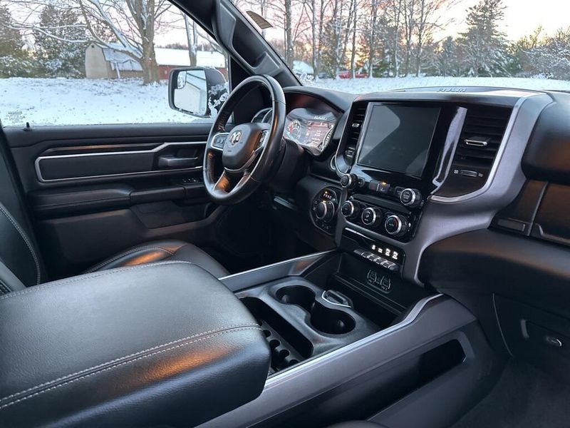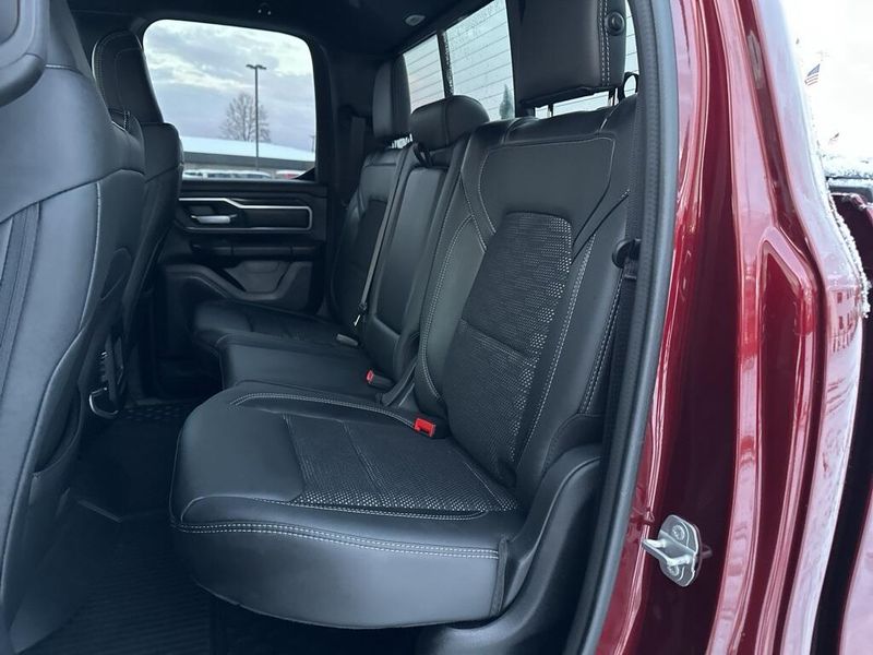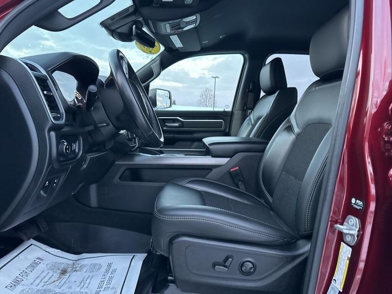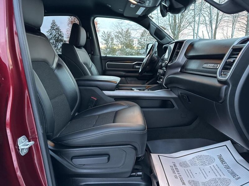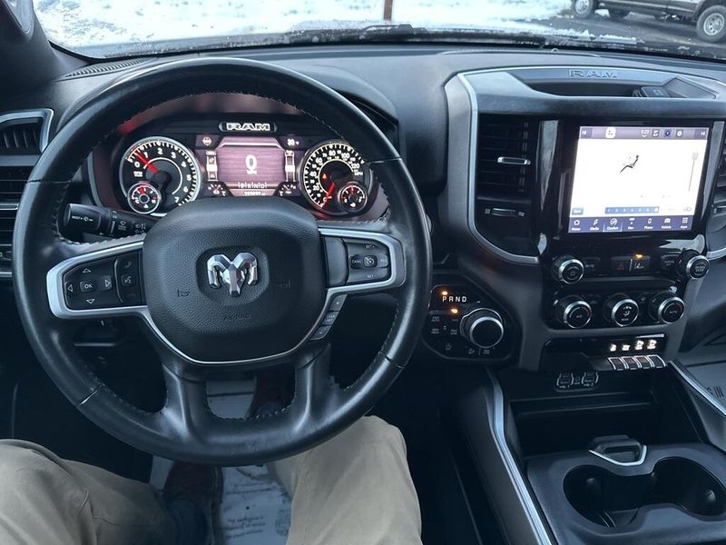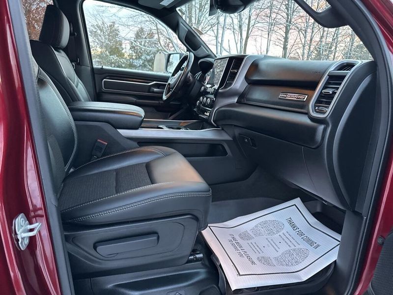 Clean CARFAX. CARFAX One-Owner. Certified. 2022 Ram 1500 Big Horn/Lone Star Delmonico Red Pearlcoat 4WD 8-Speed Automatic HEMI 5.7L V8 Multi Displacement VVT Local Trade, Non-Smoker, 3 Rear Seat Head Restraints, 4 Way Front Headrests, Accent Color Premium Power Mirrors, Advanced Brake Assist, All Plant-Installed Decals, Auto-Dimming Exterior Driver Mirror, Auto-Dimming Rear-View Mirror, Back Country I/P Badge, Back Country Package, Big Horn Badge, Big Horn Level 1 Equipment Group, Black Exterior Mirrors, Black Exterior Truck Badging, Black Headlamp Bezels, Black Painted Exterior Mirrors Caps, Black Premium Power Mirrors, Bluetooth Handsfree Phone & Audio, Bucket Seats, Center Console Parts Module, Class IV Receiver Hitch, Cloth/Vinyl Bucket Seats, Cluster 3.5'' TFT Color Display, Convex Wide-Angle Mirror Insert, Delete LED Lamp - Floor Console Bin, Dual Exhaust w/Black Tips, E-Locker Rear Axle, Exterior Mirrors Courtesy Lamps, Exterior Mirrors w/Heating Element, Exterior Mirrors w/Supplemental Signals, For More Info, Call 800-643-2112, Front Extra HD Shock Absorbers, Front Seat Back Map Pockets, Full Length Floor Console, Full Speed Forward Collision Warning Plus, Glove Box Lamp, Grille Surround 1 Body Color Texture 1 Black, Hill Descent Control, Lane Keep Assist, Level 1 Safety Group, Manual Adjust 4-Way Front Passenger Seat, MOPAR 4 Adjustable Cargo Tie-Down Hooks, MOPAR Deployable Bed Step, MOPAR Front & Rear Rubber Floor Mats, MOPAR Spray In Bedliner, Off Road Decals, Off-Road Information Pages, Painted Front Bumper, Painted Rear Bumper, Pedestrian Emergency Braking, Power 2-Way Driver Lumbar Adjust, Power 8-Way Driver Seat, Power Adjustable Pedals, Power-Folding Mirrors, Quick Order Package 27Z Big Horn, Radio: Uconnect 5 W w/8.4'' Display, Raised Ride Height, RAM Grille Badge - Black, Rear 60/40 Folding Seat, Rear Dome w/On/Off Switch Lamp, Rear Extra HD Shock Absorbers, Rear Power Sliding Window, Rear Window Defroster, SiriusXM Satellite Radio, Sun Visors w/Illuminated Vanity Mirrors, Tow Hooks, Tri-Fold Tonneau Cover, Universal Garage Door Opener, Wheels: 18'' x 8.0'' Black Painted Aluminum.
