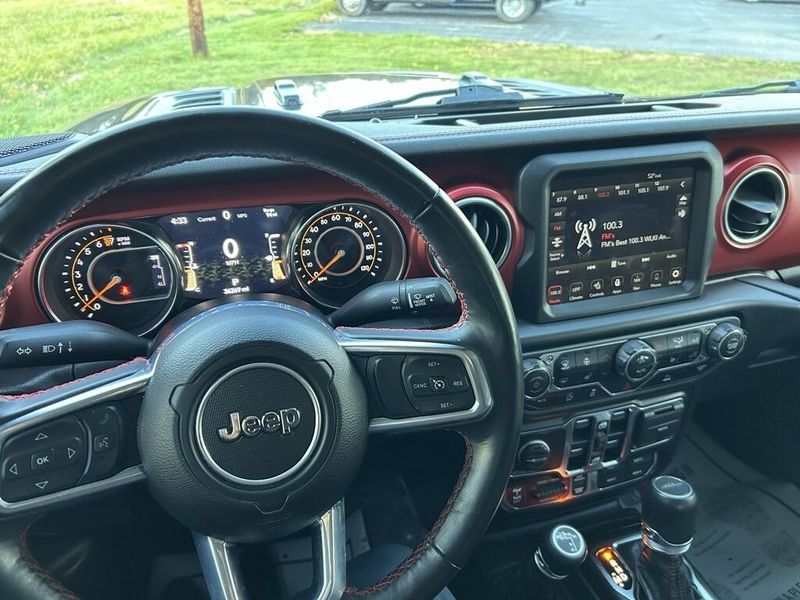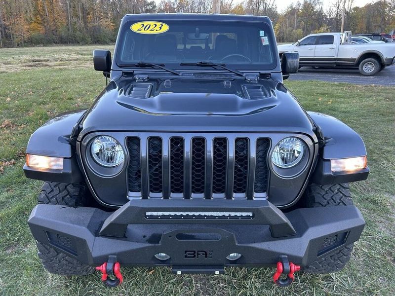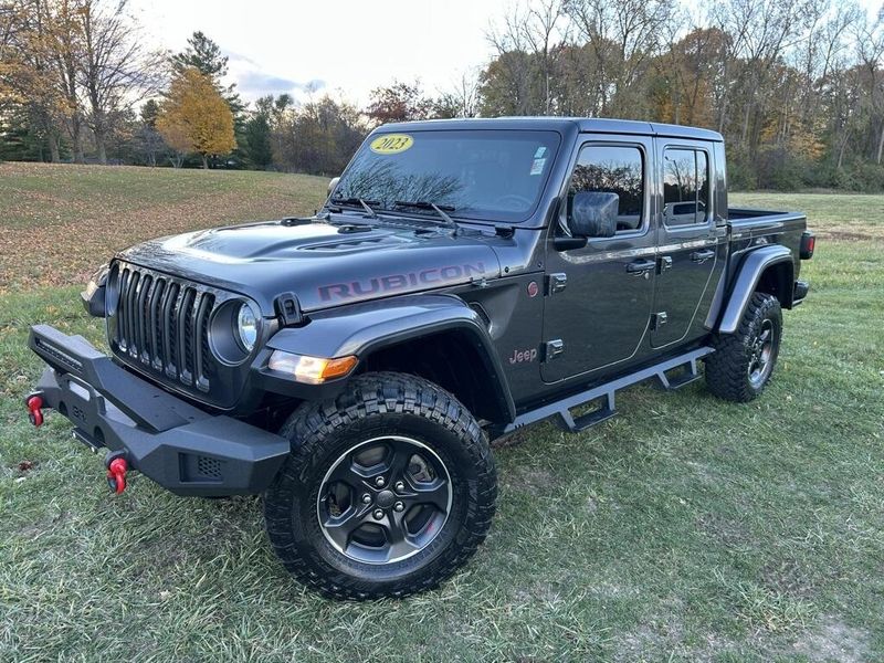CARFAX One-Owner. 2023 Jeep Gladiator Rubicon Granite Crystal Metallic Clearcoat 4WD 8-Speed Automatic 3.6L V6 24V VVT Local Trade, Non-Smoker, Remote Start, Body Color 3-Piece Hard Top, Body Color Fender Flares (2-Piece), Cold Weather Group, Freedom Panel Storage Bag, Heated Front Seats, Heated Steering Wheel, Navigation System, No Soft Top, Quick Order Package 24R Rubicon, Radio: Uconnect 4C Nav w/8.4'' Display, Rear Sliding Window, Rear Window Defroster, Wheels: 17'' x 7.5'' Granite Crystal Aluminum.