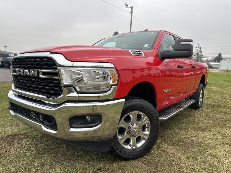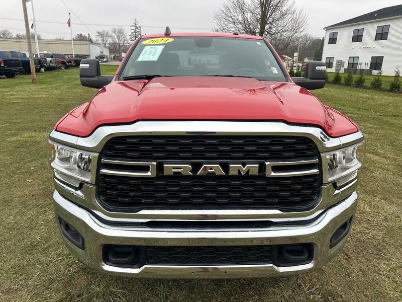 Clean CARFAX. CARFAX One-Owner. 2024 Ram 2500 Big Horn Flame Red Clearcoat 4WD 8-Speed Automatic 6.4L V8 Non-Smoker, 2 Way Rear Headrest Seat, 2nd Row In Floor Storage Bins, 4 Way Front Headrests, 40/20/40 Split Bench Seat, 4G LTE Wi-Fi Hot Spot, 8.4'' Touchscreen Display, Apple CarPlay, Auto Power-Folding Mirrors, Bed Utility Group, Big Horn IP Badge, Black Exterior Mirrors, Bluetooth Handsfree Phone & Audio, Center Hub, Connectivity - US/Canada, Dual Glove Boxes, Exterior Mirrors Courtesy Lamps, Exterior Mirrors w/Heating Element, Exterior Mirrors w/Supplemental Signals, Foam Bottle Insert (Door Trim Panel), Footwell Courtesy Lamp, For Details, Visit DriveUconnect.com, For More Info, Call 800-643-2112, Forward & Reverse Utility Lights, Front Armrest w/Cupholders, Front Center Seat Cushion Storage, Front Fog Lamps, Front Seat Back Map Pockets, Global Telematics Box Module (TBM), Glove Box Lamp, Google Android Auto, GPS Antenna Input, Integrated Center Stack Radio, Integrated Voice Command w/Bluetooth, Leather Wrapped Steering Wheel, LED Bed Lighting, Level 1 Equipment Group, Locking Lower Glove Box, Manual Adjust 4-Way Front Passenger Seat, Mirror Running Lights, MOPAR Deployable Bed Step, MOPAR Spray In Bedliner, Navigation System, Power 2-Way Driver Lumbar Adjust, Power Adjust 8-Way Driver Seat, Power Adjust Mirrors, Power Adjustable Convex Aux Mirrors, Power Heated Fold Telescope Mirrors, Power Telescoping Mirrors, Premium Cloth 40/20/40 Bench Seat, Protection Group, Quick Order Package 2GZ Big Horn, Radio: Uconnect 5 W w/8.4'' Display (A62), Rear 60/40 Folding Seat, Rear Dome w/On/Off Switch Lamp, Remote USB Port - Charge Only, Selectable Tire Fill Alert, SiriusXM Radio Service, SiriusXM Satellite Radio, Steering Wheel Mounted Audio Controls, Storage Tray, Tow Hooks, Wheels: 18'' x 8.0'' Polished Aluminum.